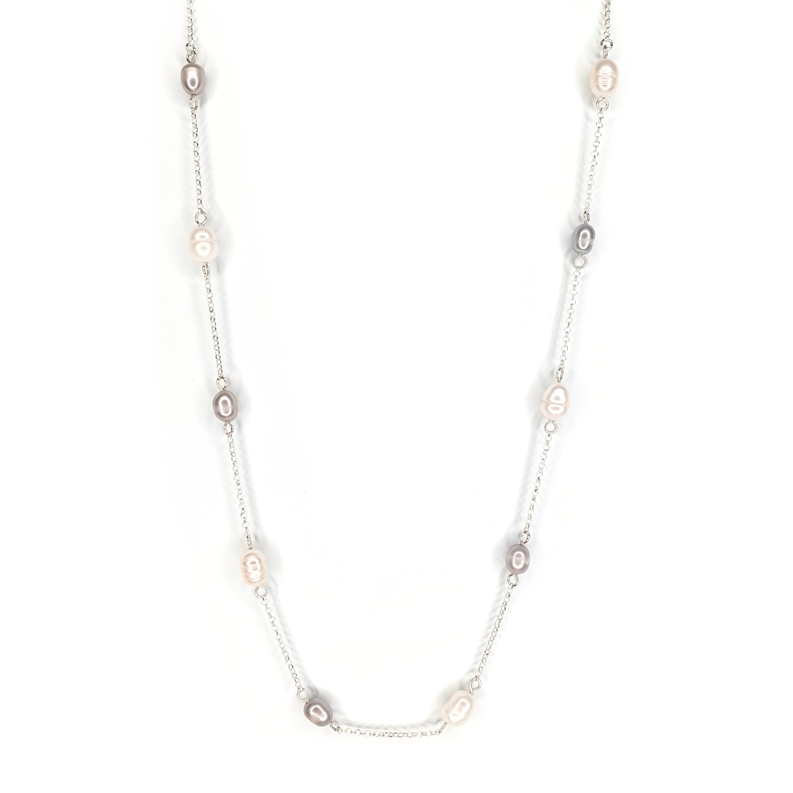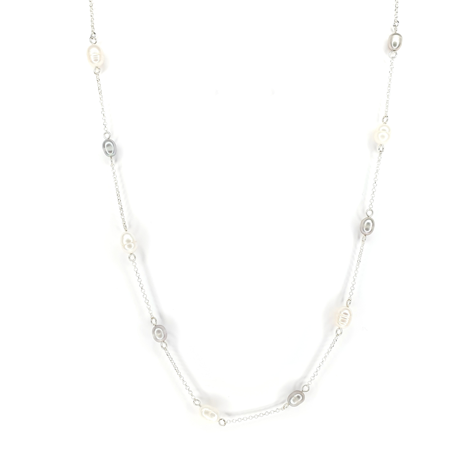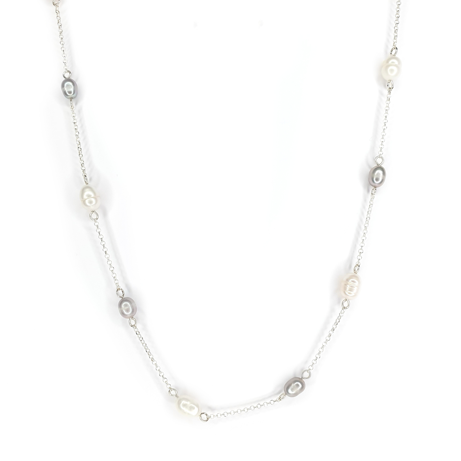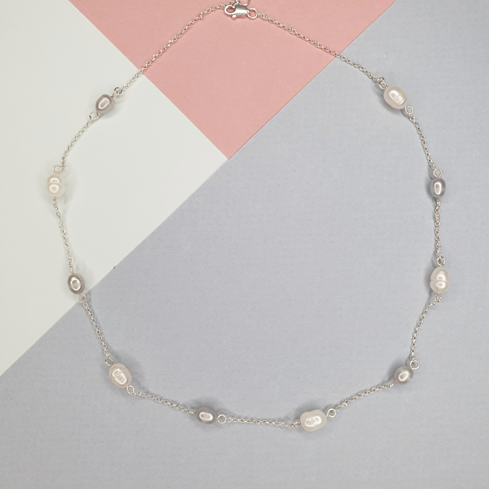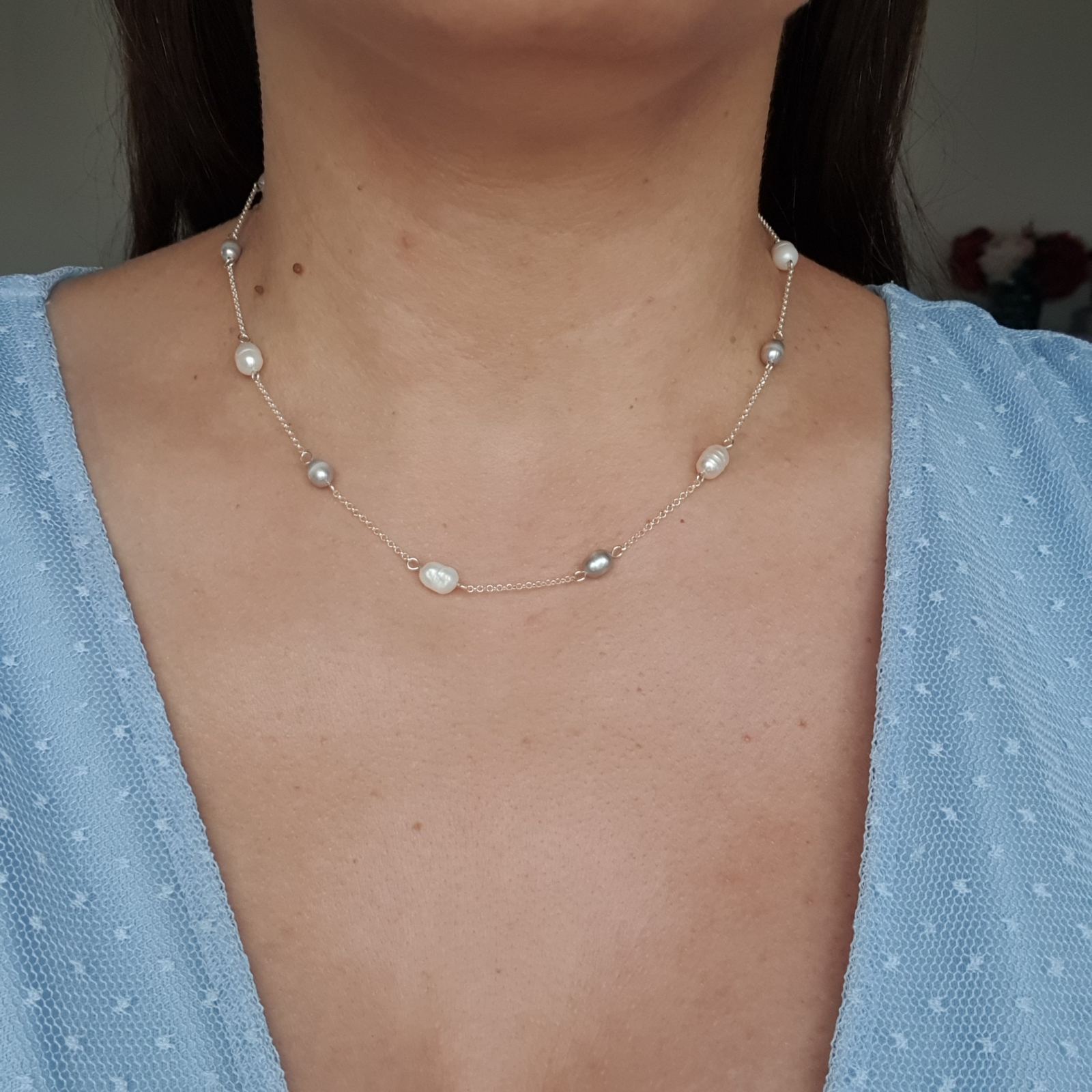 Colier realizat din argint cu perle de cultura albe si gri, de 8mm si 10mm