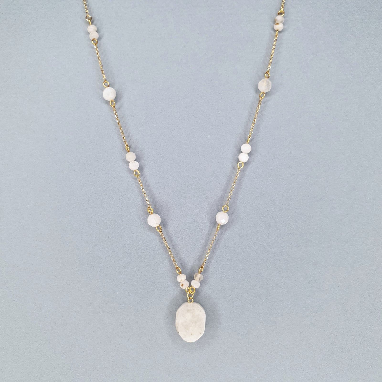 Colier cu pietre semipretioase de 4mm, 6mm piatra lunii, accesorii metalice argint placat cu aur